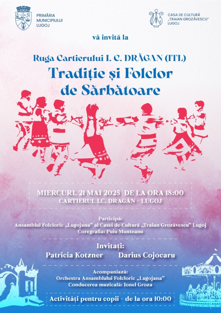 Vă invităm cu bucurie miercuri, 21 mai 2025, la Ruga Cartierului I.C. Drăgan (ITL) – Lugoj.